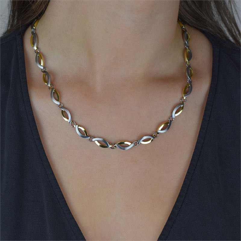 Produkt: COLLIER TI BICO SAT/GP POL,  Dieses elegante Collier besteht aus titan und wiegt 14,3 g. Es hat eine edle goldene Farbe, eine Juwelengröße von 7 und eine Breite von 5,0. Ideal als stilvolles Accessoire für jeden Anlass. Tragen Sie es zu einem eleganten Outfit, um einen Hauch von Raffinesse zu verleihen.