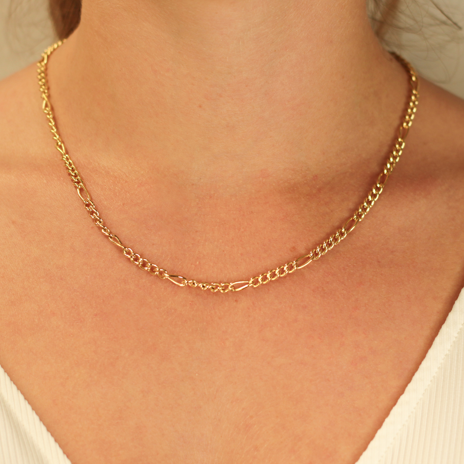 Entdecken Sie unser Collier. Dieses elegante Schmuckstück aus goldfarbenem Titan beeindruckt durch seine 50 cm Länge und 5 mm Breite. Mit einem Gewicht von 8 g und einer Tiefe von 3 mm ist es ideal für stilvolle Anlässe. Die Figaro-Kette verleiht ihr eine besondere Note. Tragen Sie es am besten zu eleganter oder Business Kleidung für einen beeindruckenden Auftritt. Neuer Zustand.