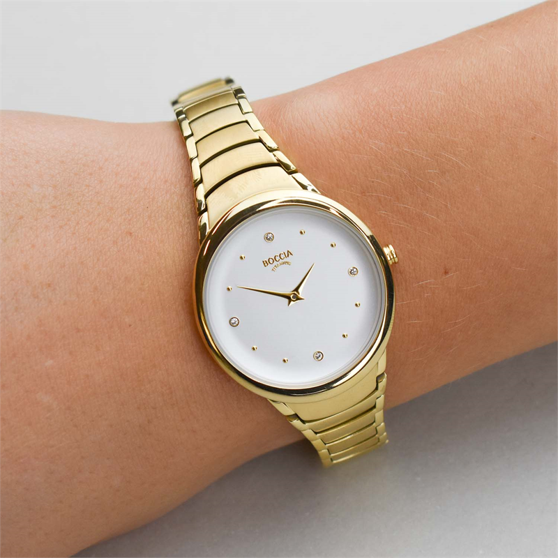Der DAU-Q TI,GP,ZBL:SILB/STEINE/GOLD IND mit Modellnummer 3276-14 ist eine elegante Quarzuhr aus Titan mit analogem Zifferblatt, goldfarbenen Details und einem punktierten Index. Sie ist nickelfrei, antiallergisch und wasserdicht bis 3 ATM. Tragen Sie diese stilvolle Uhr am besten bei formellen oder geschäftlichen Anlässen für einen raffinierten Look.
