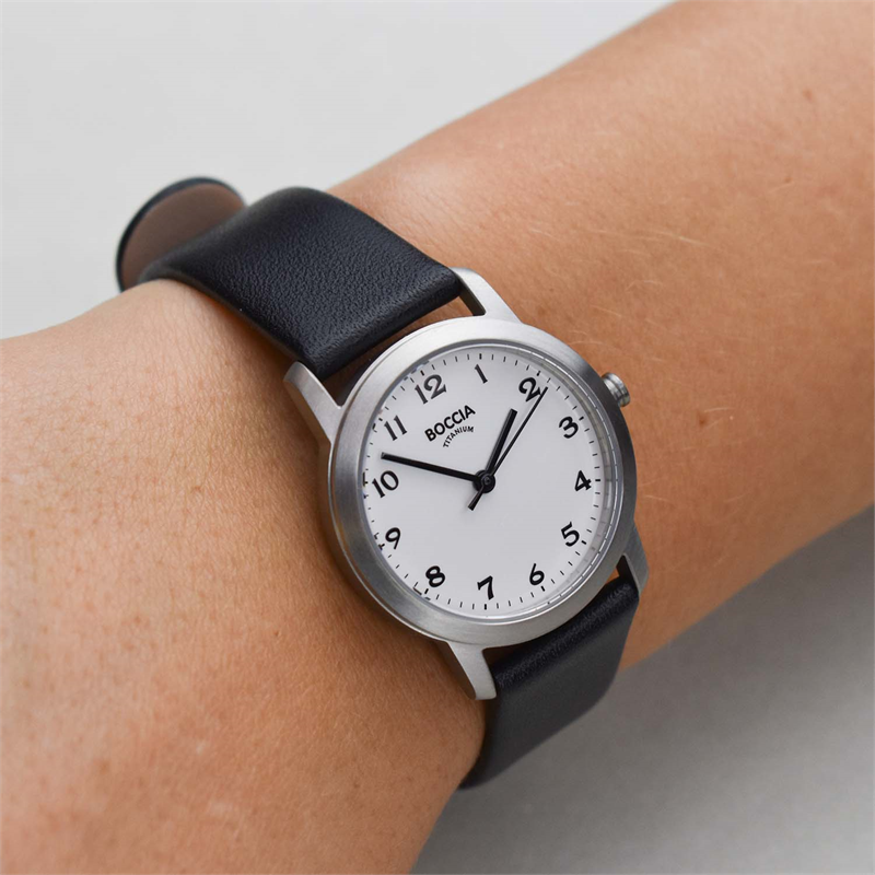 Entdecken Sie die DAU-Q TI,ZBL:WEIß/ZAH, Modell 3291-01. Diese elegante Armbanduhr bietet ein analoges Quarzwerk, ein weißes Zifferblatt mit arabischen Indizes und ein Gehäuse aus titanfarbenem Mineralglas. Der schwarze Echtlederriemen harmoniert perfekt. Wasserdicht bis 5 ATM und antiallergen. Ideal für den täglichen Gebrauch oder besondere Anlässe. Ein stilvolles Accessoire für Ihr Handgelenk!
