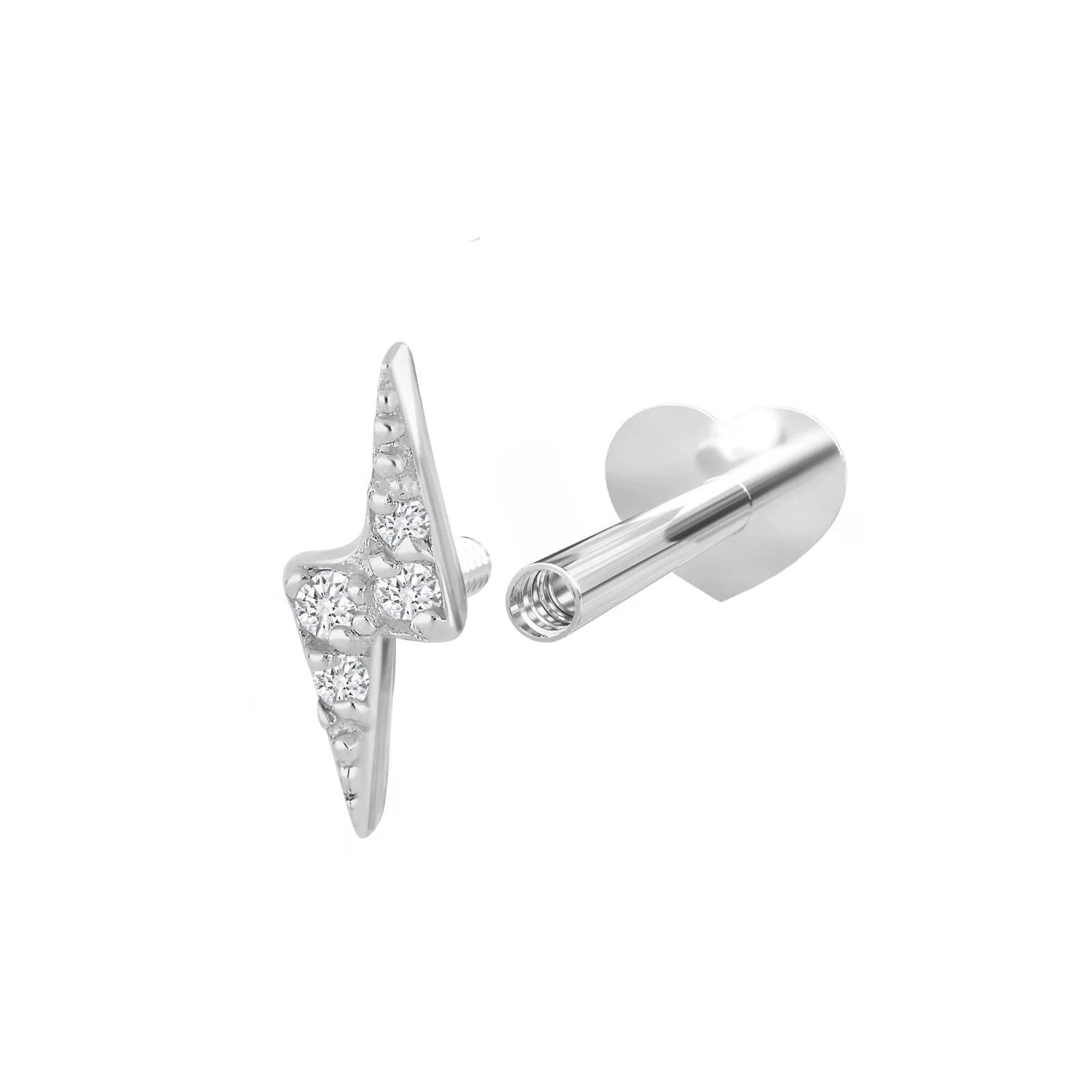 Feminines und trendiges Labret-Piercing mit coolem Blitz. Der Reißverschluss ist mit feinen Zirkonia besetzt, die dem Labret zusätzlichen Glanz verleihen.