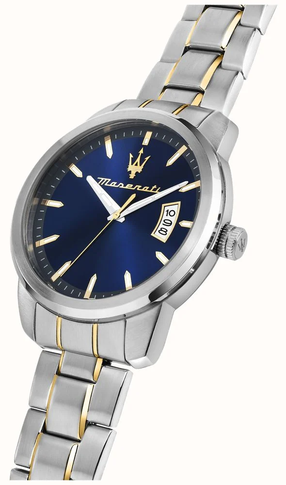 Die Herrenuhr  bietet ein elegantes blaues Zifferblatt, ein Edelstahlgehäuse kombiniert mit gelbgoldenen Akzenten. Ideal für formelle und informelle Anlässe. Am besten tragen Sie diese Uhr am Handgelenk Ihrer dominanten Hand, um Funktionalität und Stil zu betonen. Ein zeitloser Begleiter für jeden Anlass.